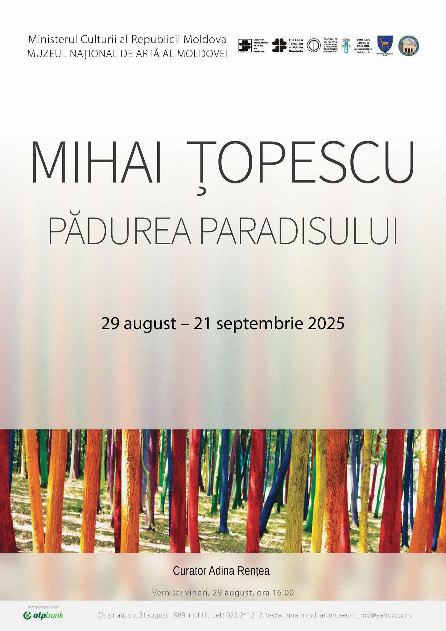 Artistul gorjean Mihai Țopescu a deschis, pe 29.08.2025, la Muzeul Național de Artă al Moldovei din Chișinău expoziția „Pădurea Paradisului”, curatoriată de criticul de artă Adina Rențea.