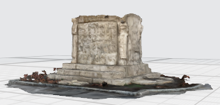 În cele patru colțuri sunt amplasate patru cariatide, reprezentând femei în costum național, ținând în mâini câte o cunună de lauri, una dintre ele înfățișând-o pe Arethia Tătărescu, președinta Ligii Femeilor Gorjene.